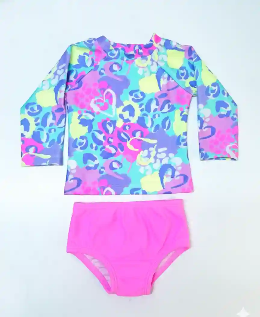 ¡Asegura la máxima diversión bajo el sol con el mínimo riesgo! Este hermoso Vestido de Baño para Bebé Niña de Dos Piezas de Pistacho es la combinación perfecta de estilo y seguridad. El diseño de manga larga ofrece una cobertura superior, mientras que el formato en dos partes facilita el cambio de pañal y las idas al baño de las más grandecitas. ¡El traje de baño bebé niña ideal para el verano!